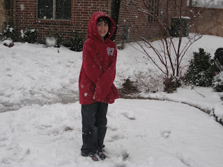 Justin couldn't be pulled away from having snowball fights all day with his friends, so no cute snow pics of him this day. Austin finished the day off with two more snowmen in our front yard. He definitely made up for no snow play the day before.